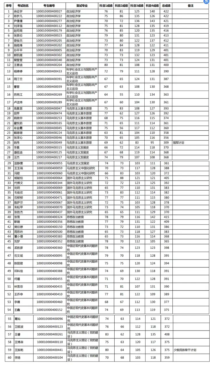 (3)马克主义理论一级学科:55-55-90-90-355,各专业复试比例原则上不超过1:1.5(出现并列情况除外)。