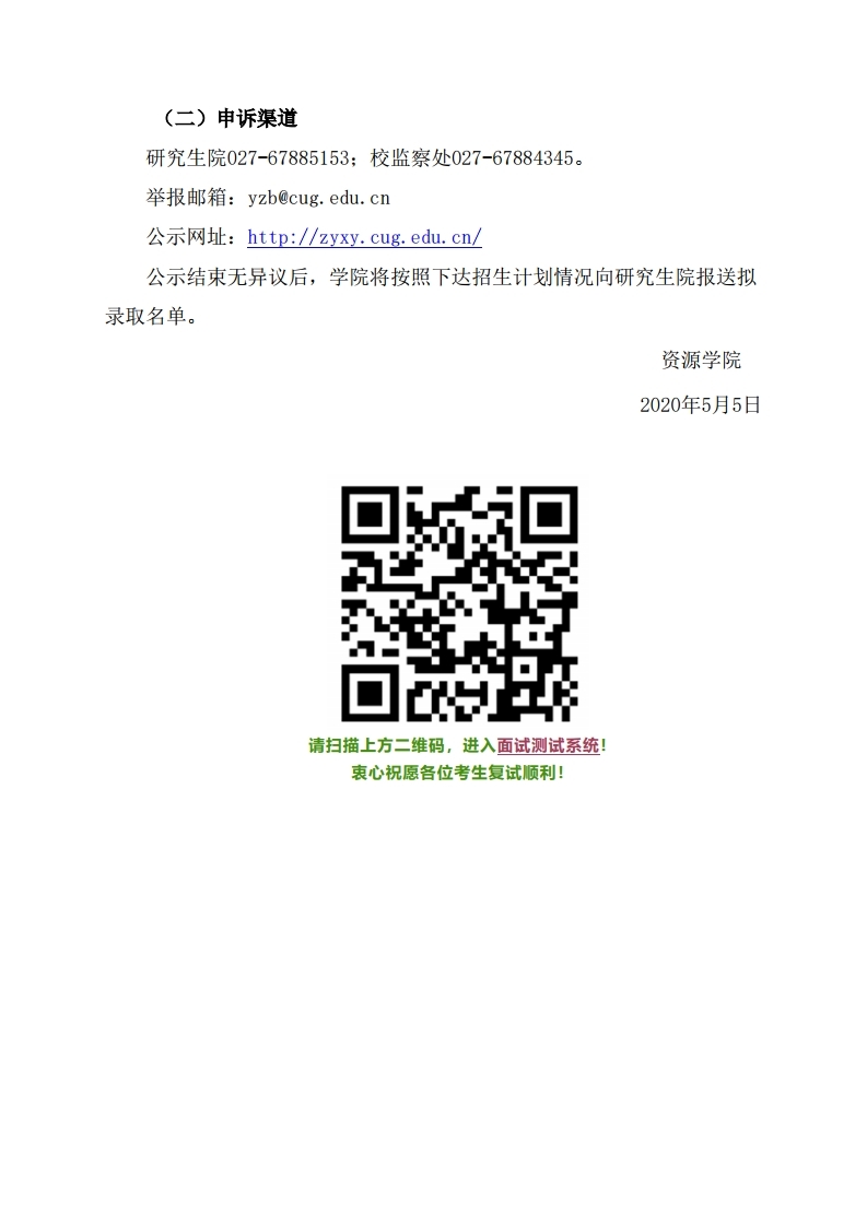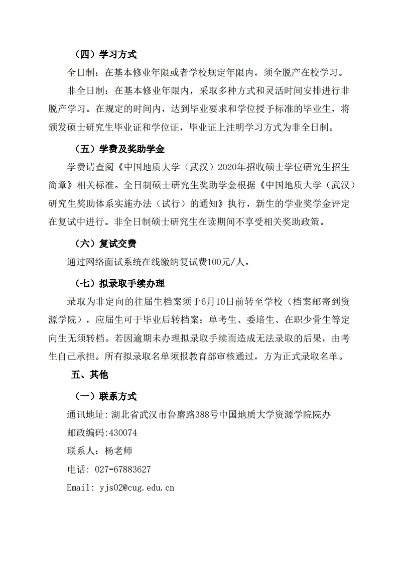 中国地质大学考研辅导班: 中国地质大学(武汉)资源学院2020年硕士研究生复试录取工作公告