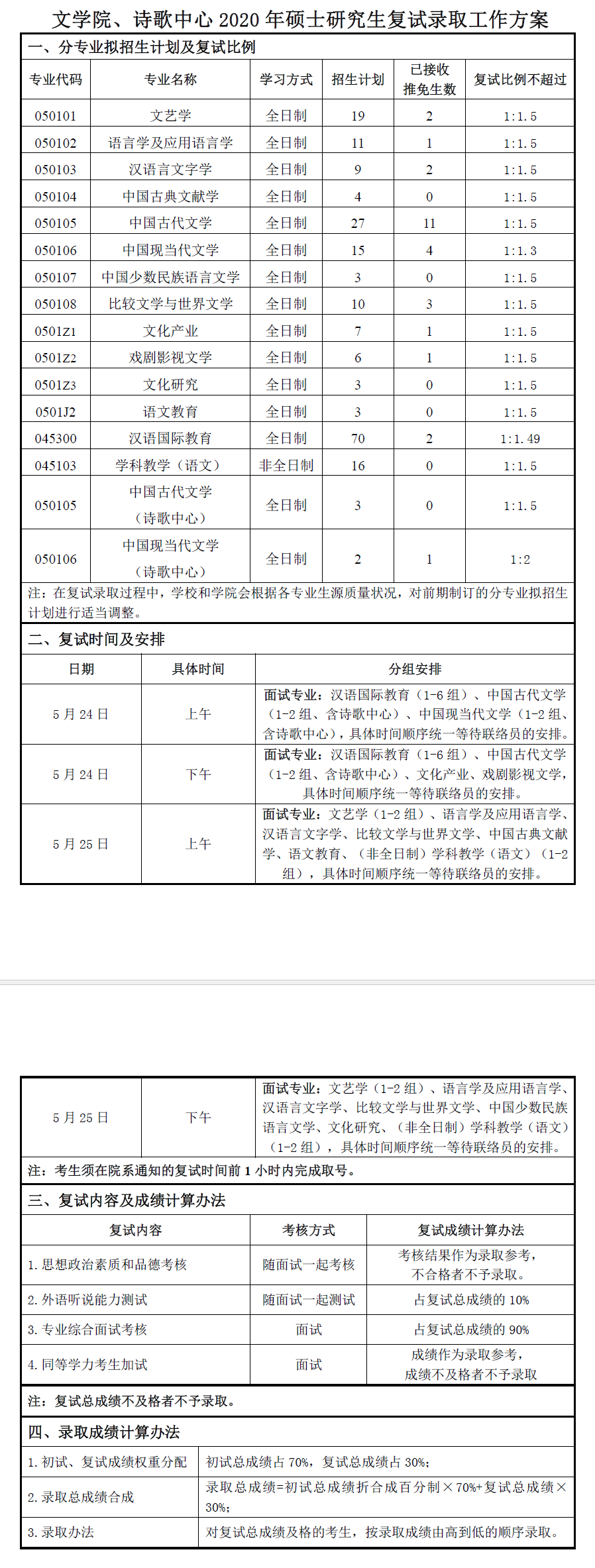 首师大考研辅导班:2020年首都师范大学文学院、诗歌中心考研复试方案