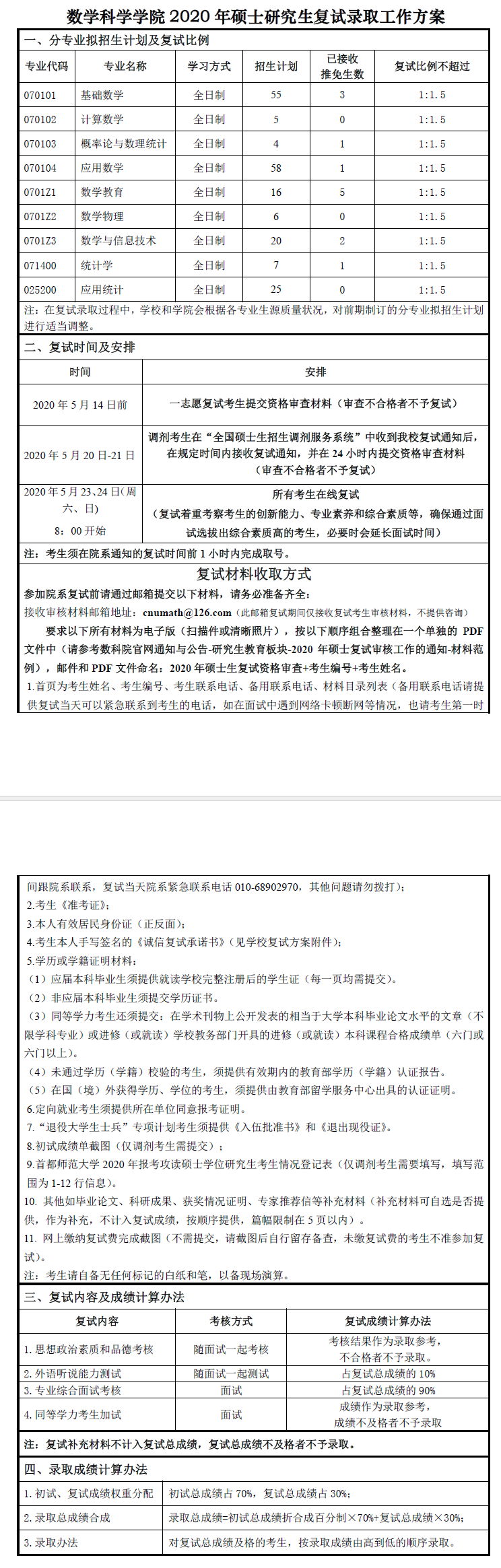 首师大考研辅导班:2020年首都师范大学数学科学学院研究生考研复试方案