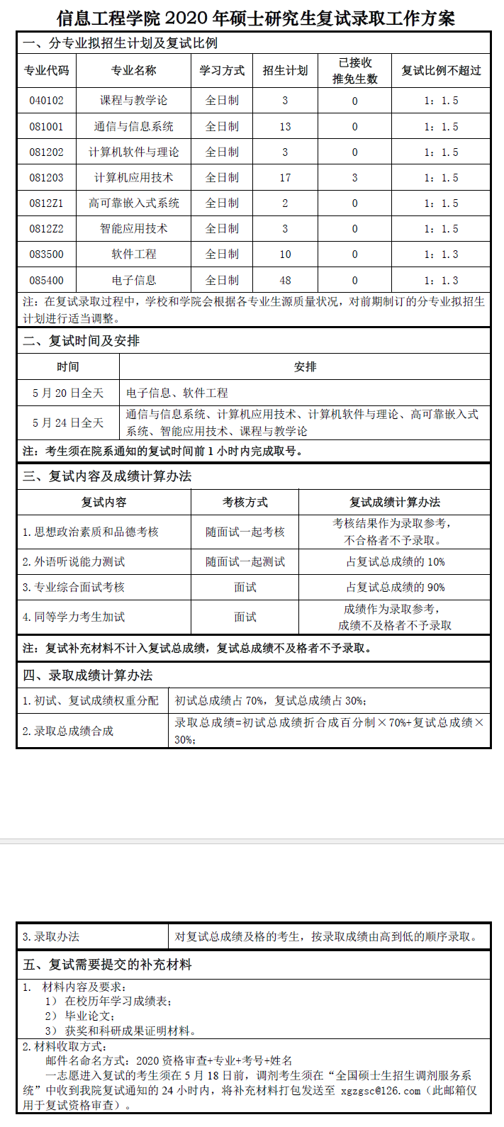 首师大考研辅导班:2020年首都师范大学信息工程学院研究生考研复试方案
