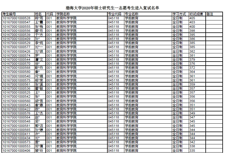 渤海大学考研辅导班:2020年渤海大学硕士研究生一志愿考生进入复试名单