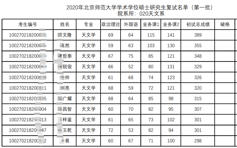 北师大考研辅导班:2020年北京师范大学天文系研究生考研一志愿复试名单