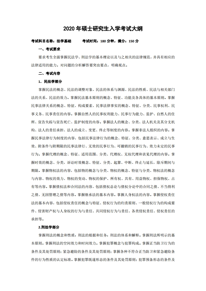 中国石油大学考研辅导班:中国石油大学(华东)710法学基础2020年硕士研究生考试大纲、参考书目