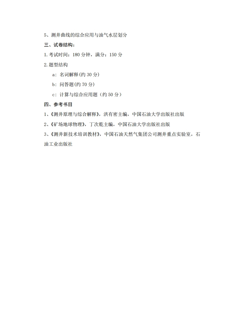 中国石油大学考研辅导班:中国石油大学(华东)测井方法与原理2020年硕士研究生考试大纲、参考书目