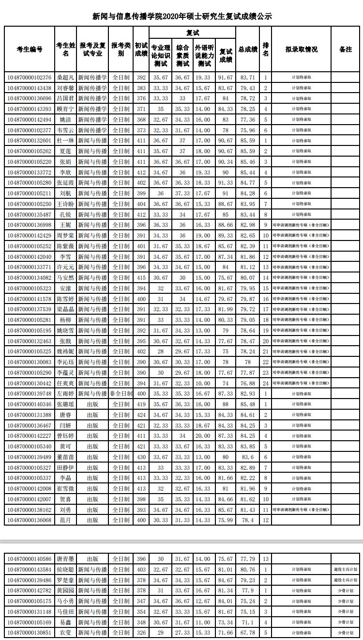 2020华中科技大学新闻与信息传播学院硕士研究生复试成绩公示