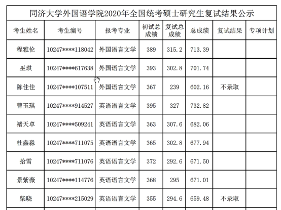 同济考研辅导班: 同济大学外国语学院:2020年全国统考硕士研究生复试结果公示