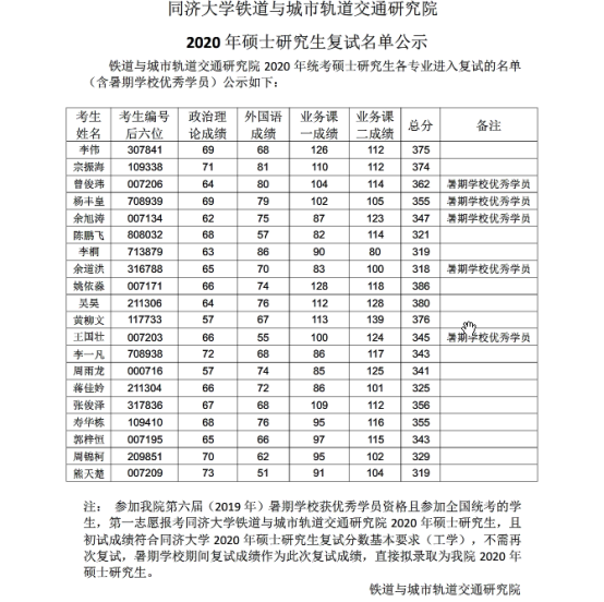同济考研辅导班: 同济铁道与城市轨道交通研究院2020硕士研究生复试名单公示