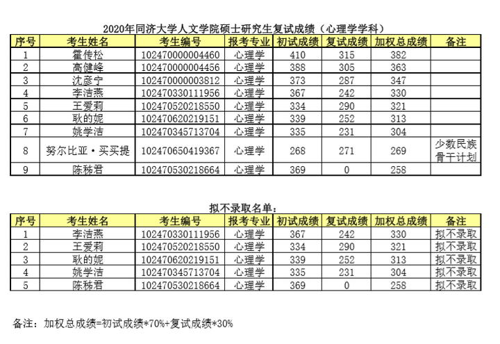 同济考研联盟: 同济大学2020人文学院心理学科硕士研究生复试成绩