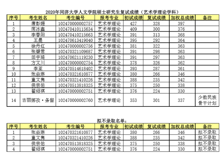 同济考研辅导班: 同济大学2020人文学院艺术理论学科硕士研究生复试成绩