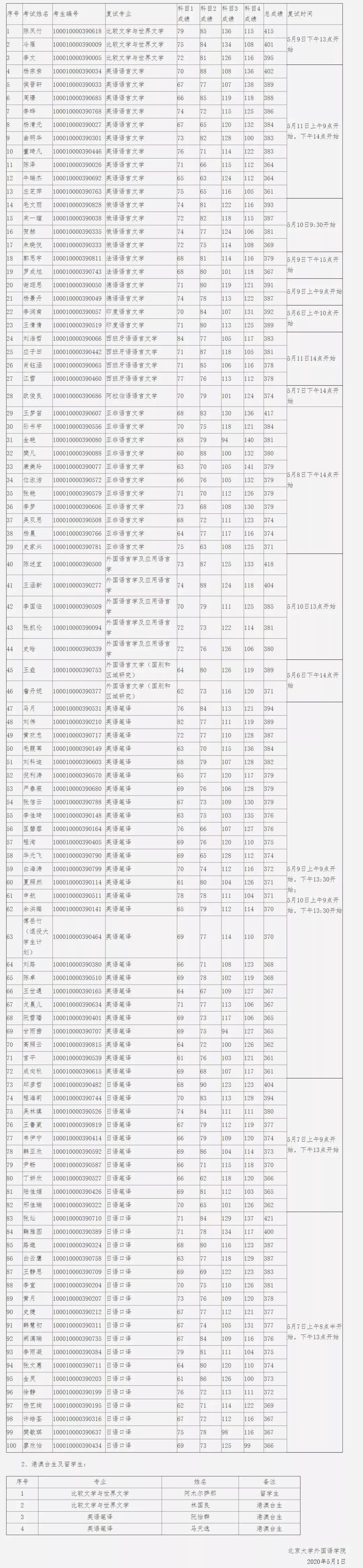 北大考研辅导班:北京大学2020年外国语学院考研复试成绩公布