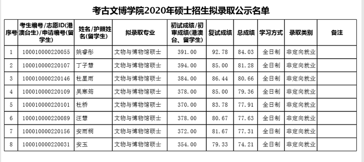 北京大学考研辅导班:2020年北京大学考古文博学院考研拟录取名单公布