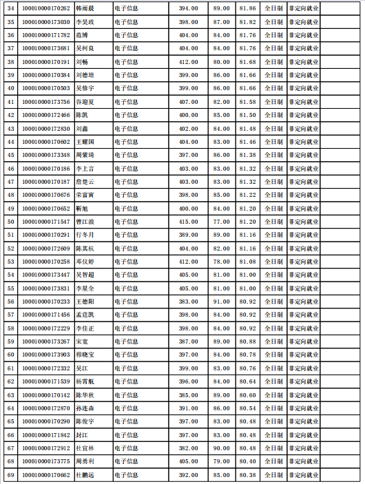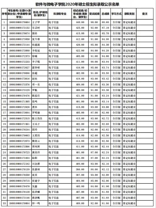 北京大学考研辅导班:2020年北京大学软件与微电子学院硕士招生拟录取公示名单
