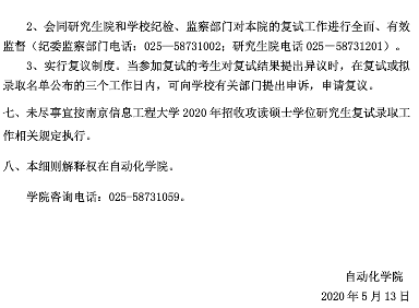 南信大考研辅导班:自动化学院2020年招收攻读硕士学位研究生复试及录取工作细则