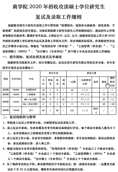 南信大考研辅导班:商学院2020年招收攻读硕士学位研究生复试及录取工作细则