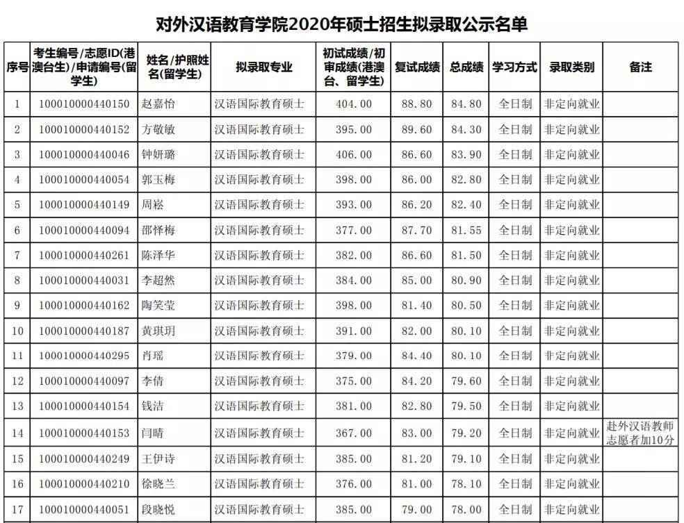 北大考研辅导班:北京大学2020年汉语国际教育考研拟录取公示名单