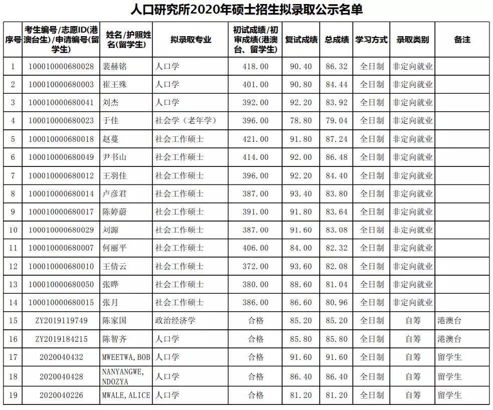 北大考研辅导班:北京大学2020年人口研究所考研拟录取名单公布