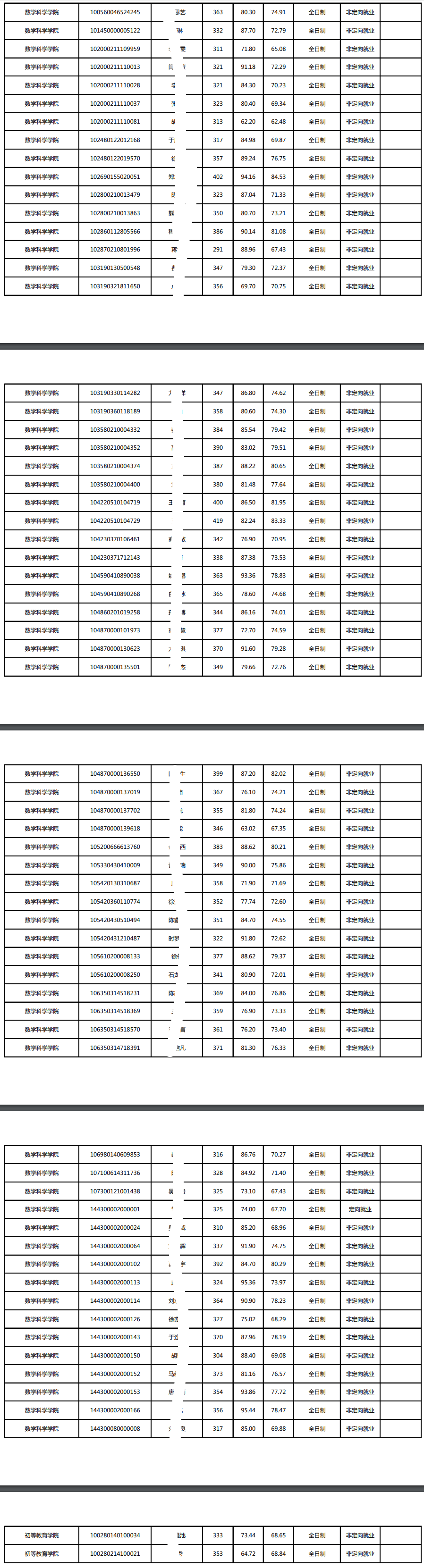 首师大考研辅导班:2020年首都师范大学数学科学学院考研招生复试拟录取名单