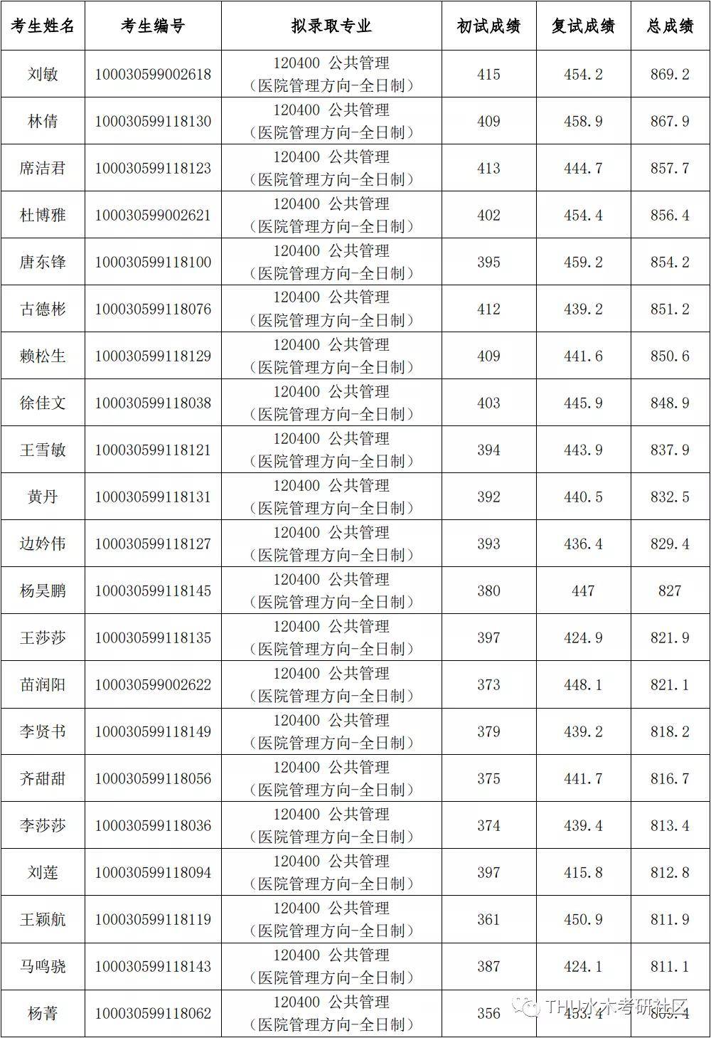 清华大学考研辅导班:2020年清华大学深研院公共管理(医院管理)硕士研究生拟录取名单