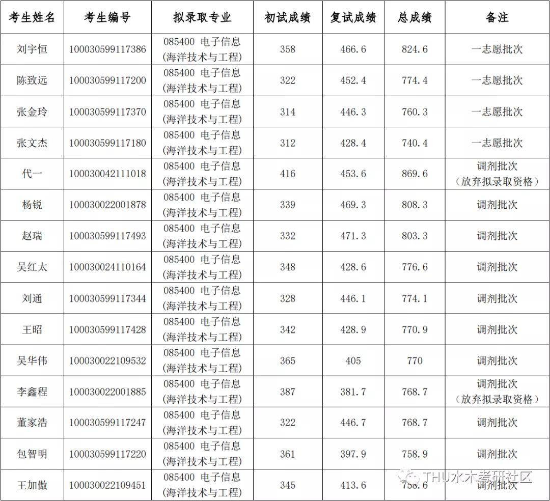 清华大学考研辅导班:2020年清华大学深研院电子信息(海洋技术与工程)硕士研究生拟录取名单