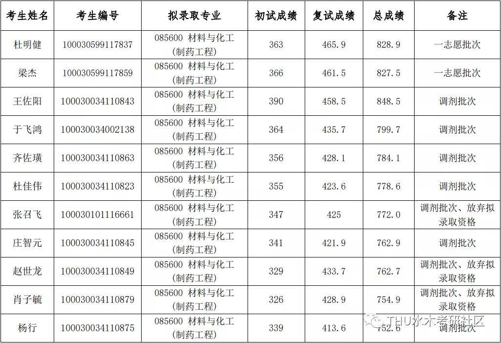 清华大学考研辅导班:2020年清华大学深研院材料与化工(制药工程)硕士研究生拟录取名单