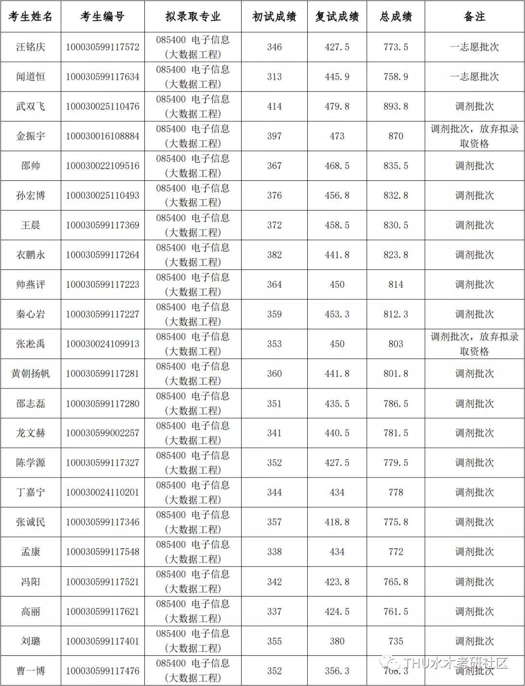 清华大学考研辅导班:2020年清华大学深研院电子信息(大数据工程)硕士研究生拟录取名单