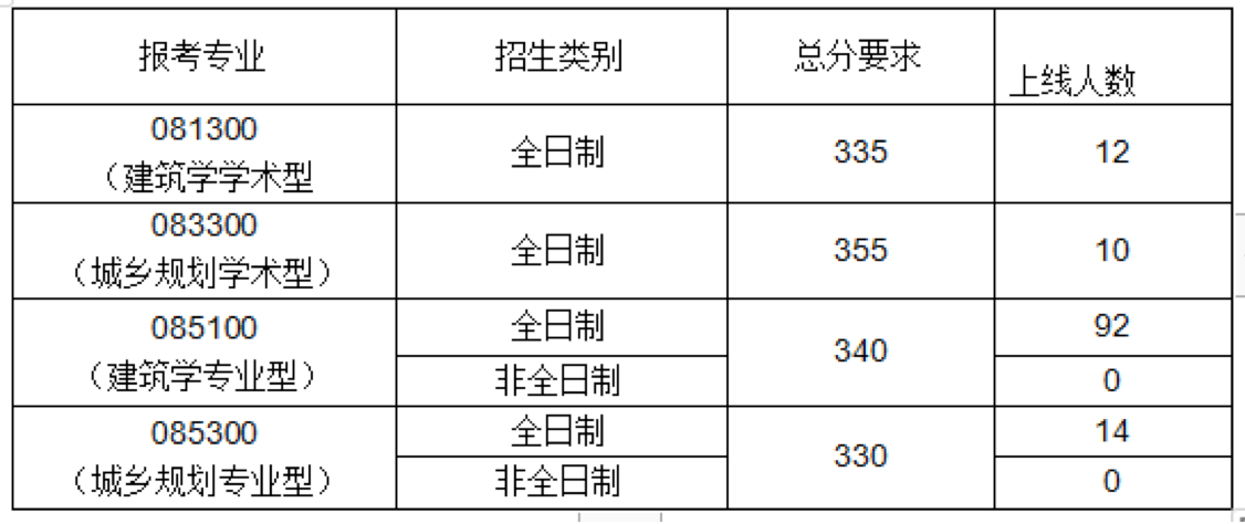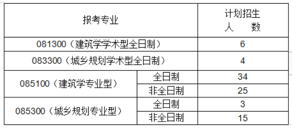 建筑学专业型(非全日制)优先接收建筑学专业(含全日制学术型、专业型)考生的调剂,城市规划专业型(非全日制)优先接收城乡规划学学术型(全日制)和城市规划专业型(全日制)专业考生的调剂。085100接收调剂25人;085300接收调剂15人。