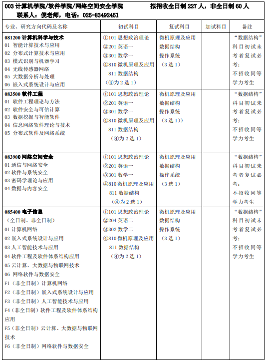南京邮电大学考研辅导班:南京邮电大学计算机学院/软件学院/网络空间安全学院2020招生专业目录