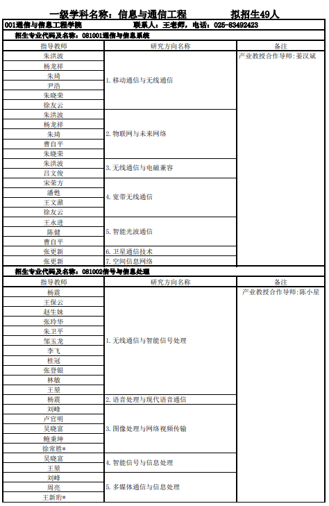 南京邮电大学考研辅导班:南京邮电大学通信与信息工程学院2020博士招生专业目录