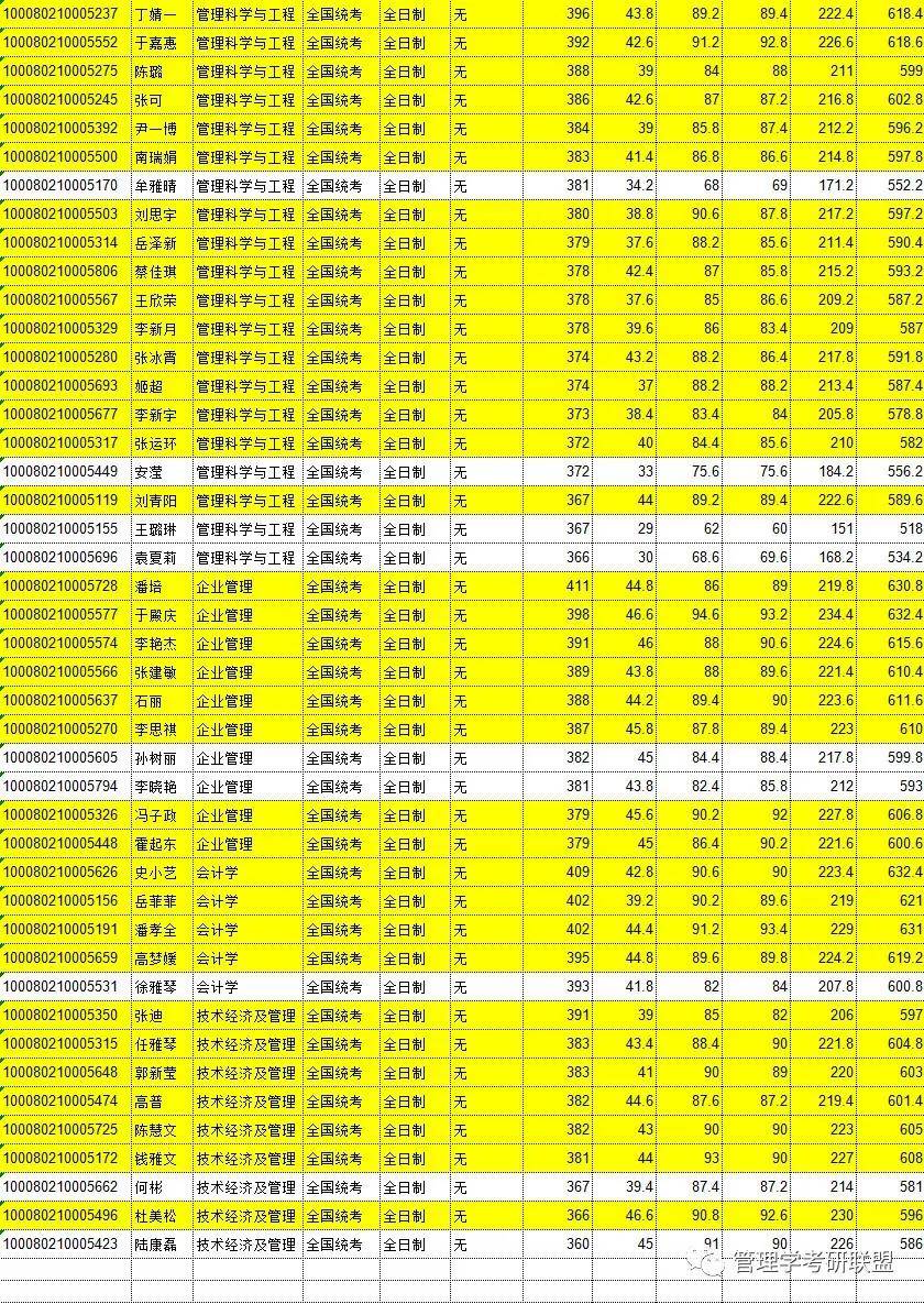 企业管理拟录取8人,最低分379,最高分411