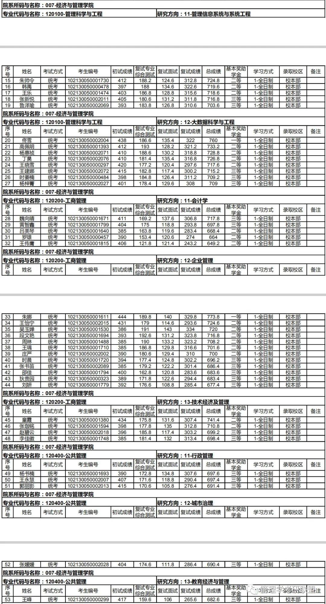 管理科学与工程统考拟录取13人,最低分393,最高分438