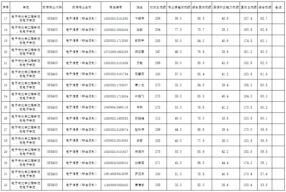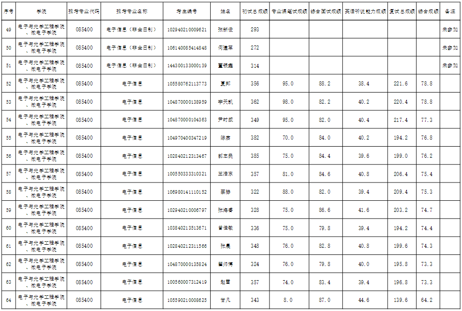 南京邮电大学考研辅导班:电子与光学工程学院、微电子学院2020年硕士研究生复试成绩公示(二)