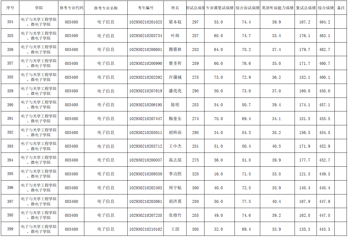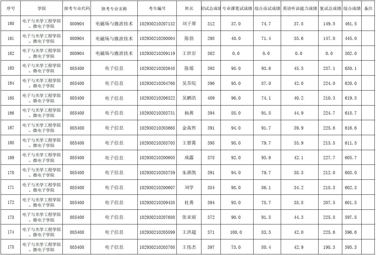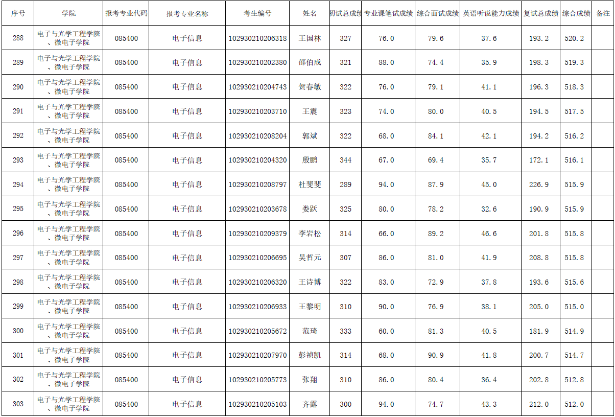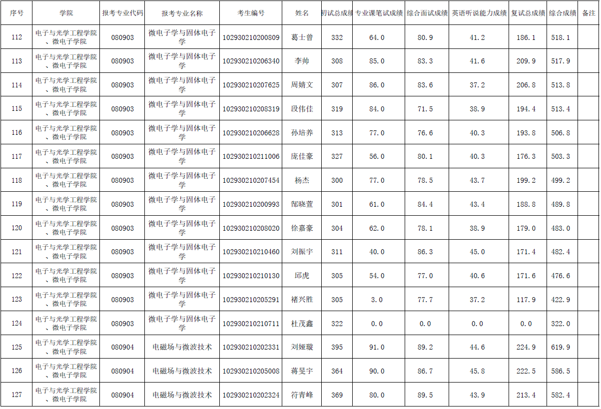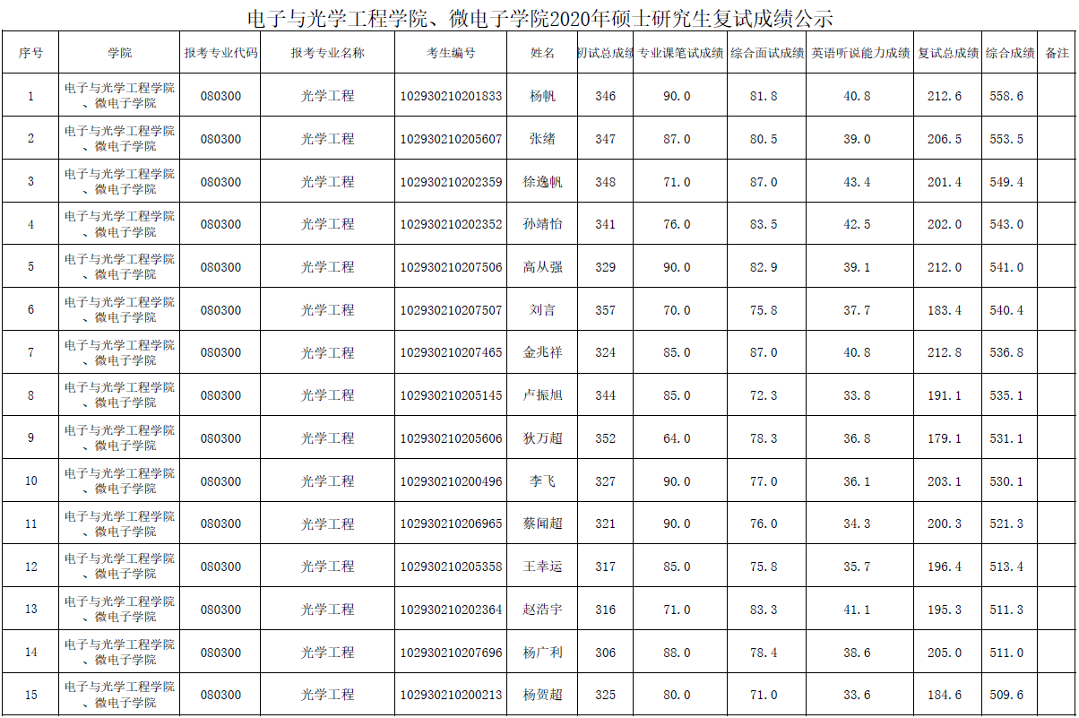 南京邮电大学考研辅导班:电子与光学工程学院、微电子学院2020年硕士研究生复试成绩公示