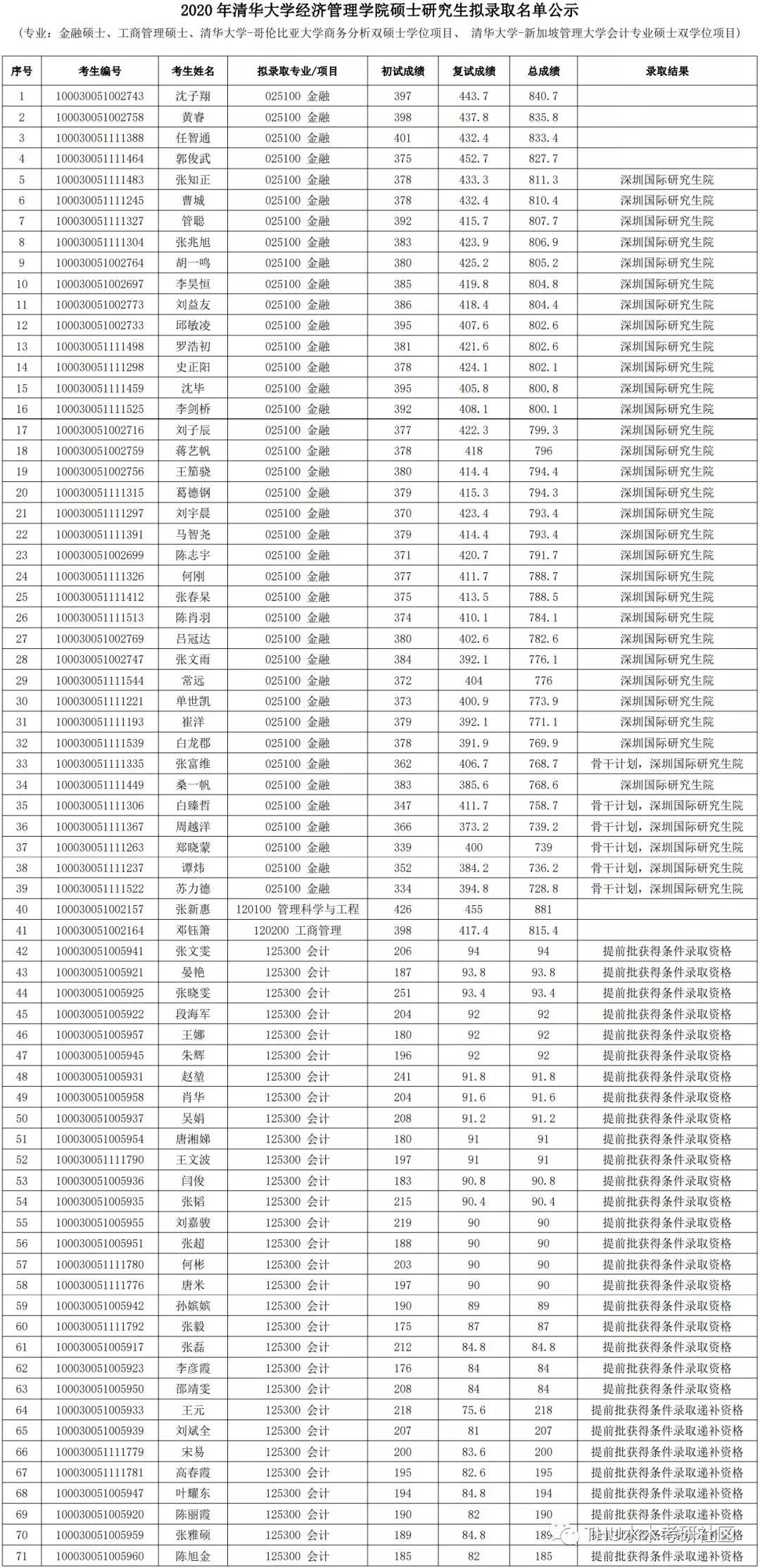 清华大学考研辅导班:2020年清华大学经济管理学院硕士研究生拟录取名单