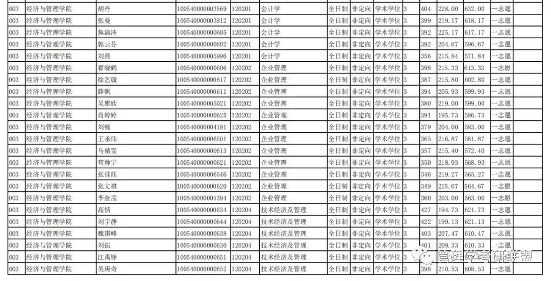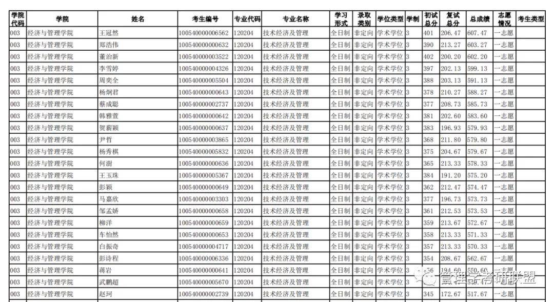 技术经济及管理一志愿统考拟录取29人,最低分345,最高分427