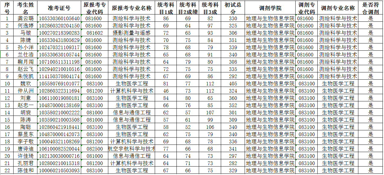 2020年地理与生物信息学院调剂考生复试名单