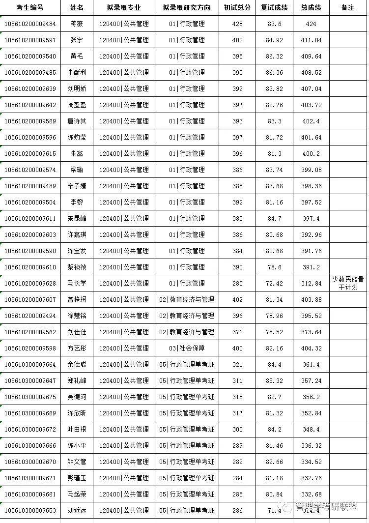 公共管理学硕一志愿拟录取21人,调剂拟录取15人,共录取36人;另单考生拟录取10人