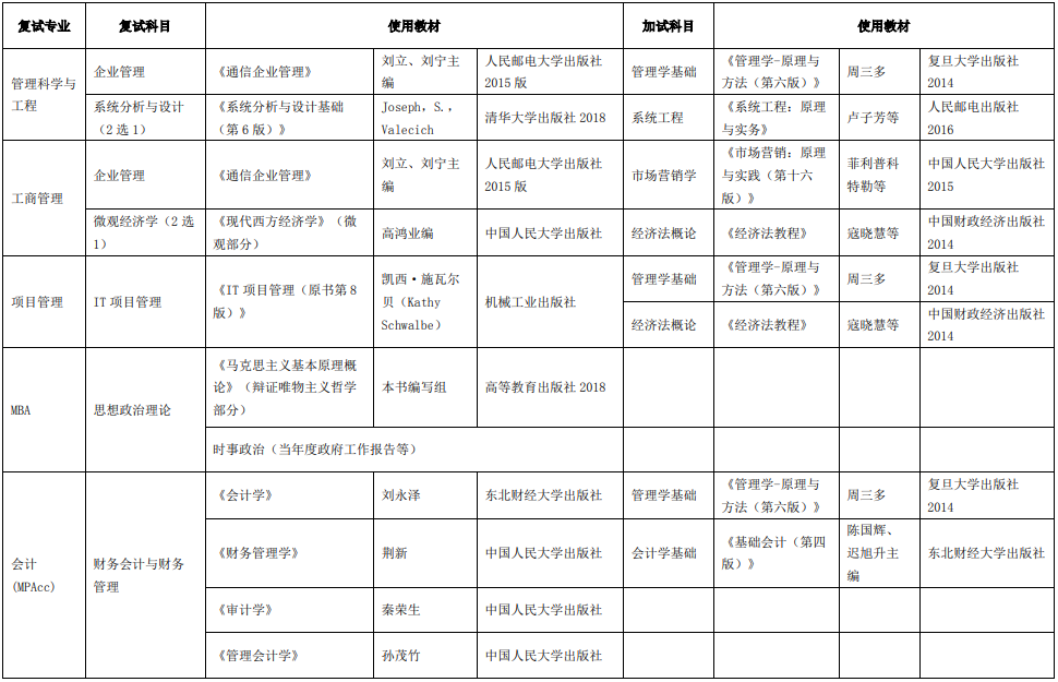 南京邮电大学考研辅导班:南京邮电大学管理学院2019年研究生科目复试参考教材
