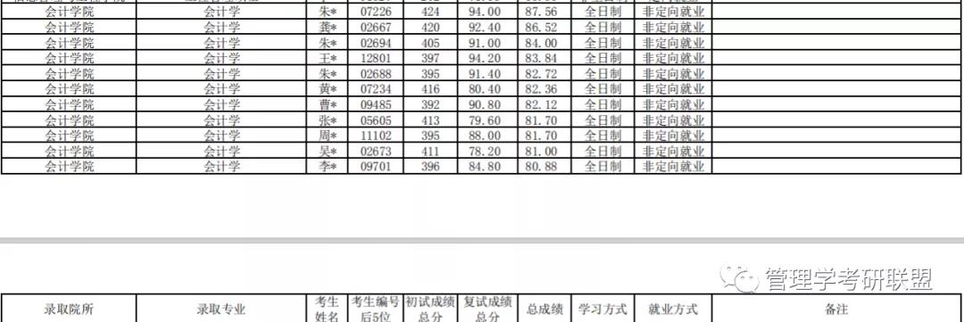 会计学拟录取11人,最低分392,最高分424