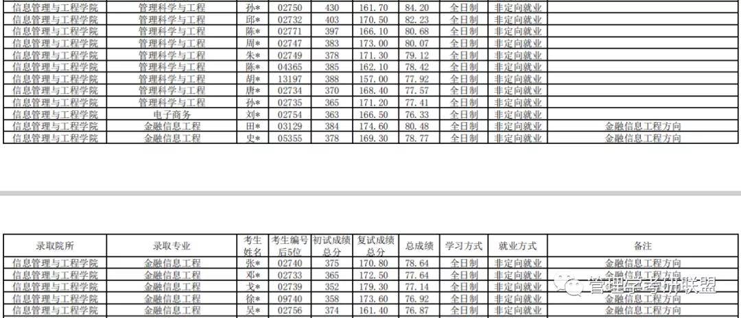 管理科学与工程拟录取9人,最低分365,最高分430