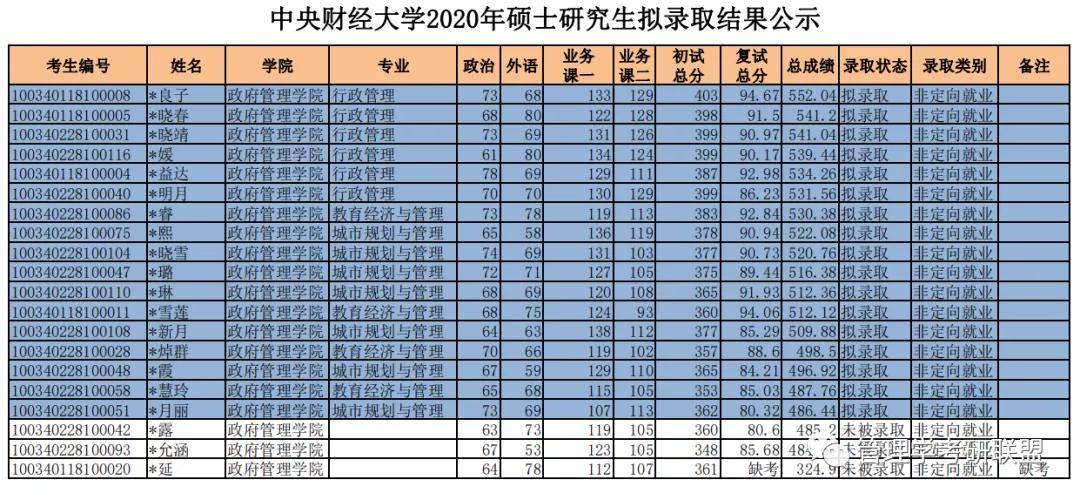 2020中央财经大学政府管理学院