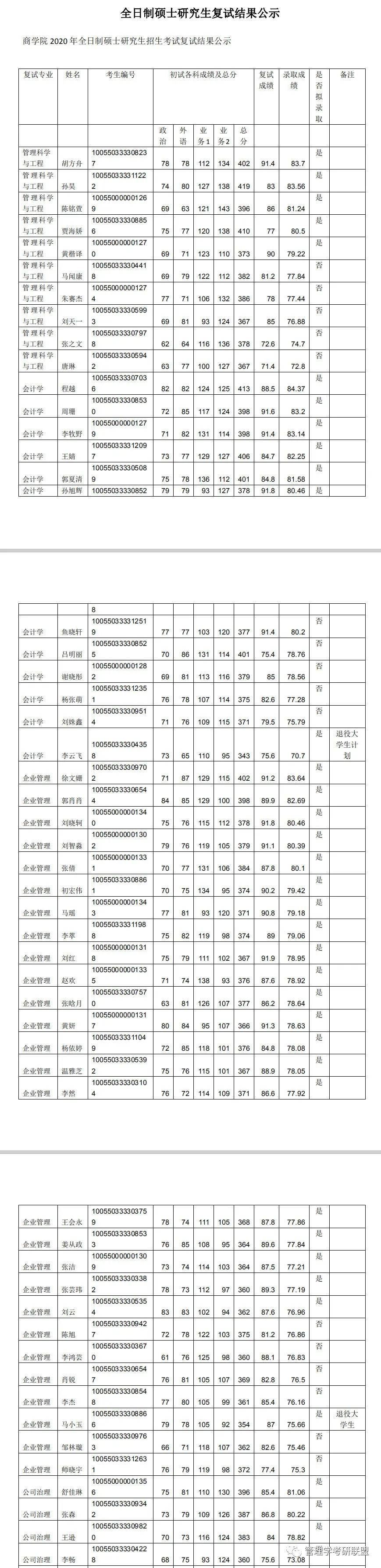管理科学与工程录取5人,淘汰5人,最低分373,最高分419