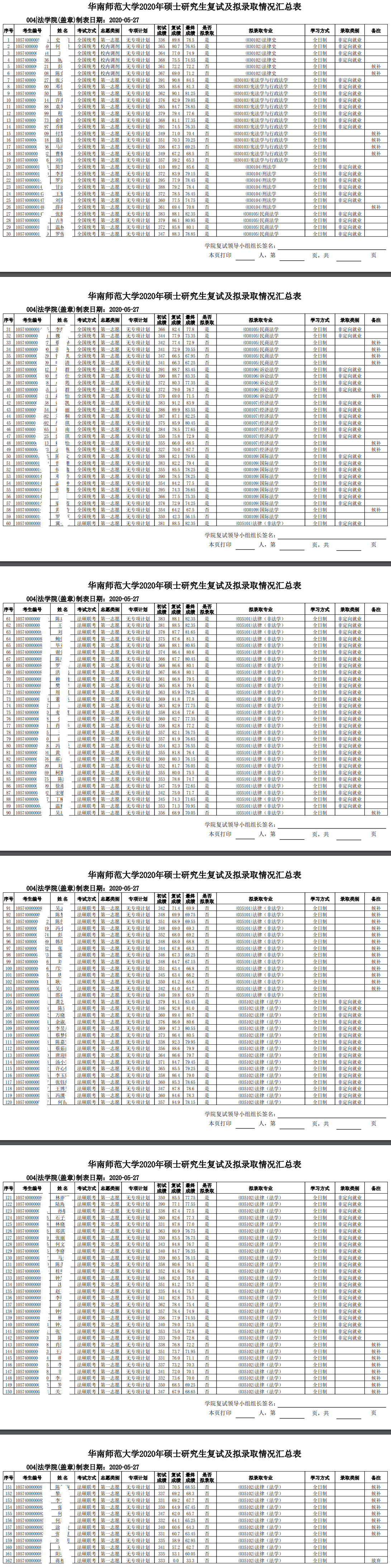 华南师范考研辅导班:2020年华南师范大学法学院硕士研究生复试成绩及拟录取名单