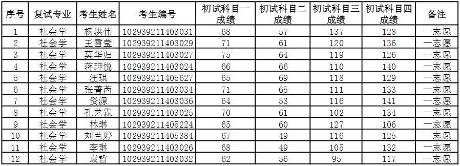 2019年社会与人口学院硕士研究生复试名单