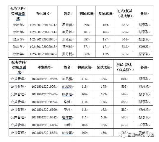 公共管理学硕拟录取6人,淘汰2人,最低分409,最高分418