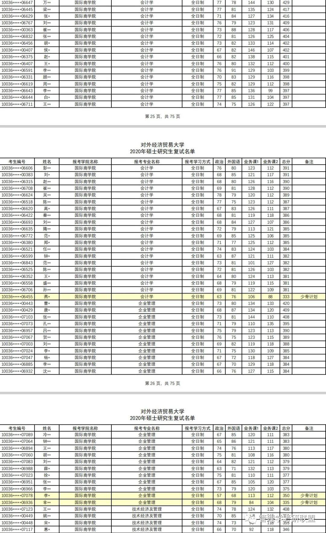企业管理进入复试22人,含少干2人,最低分375,最高分420