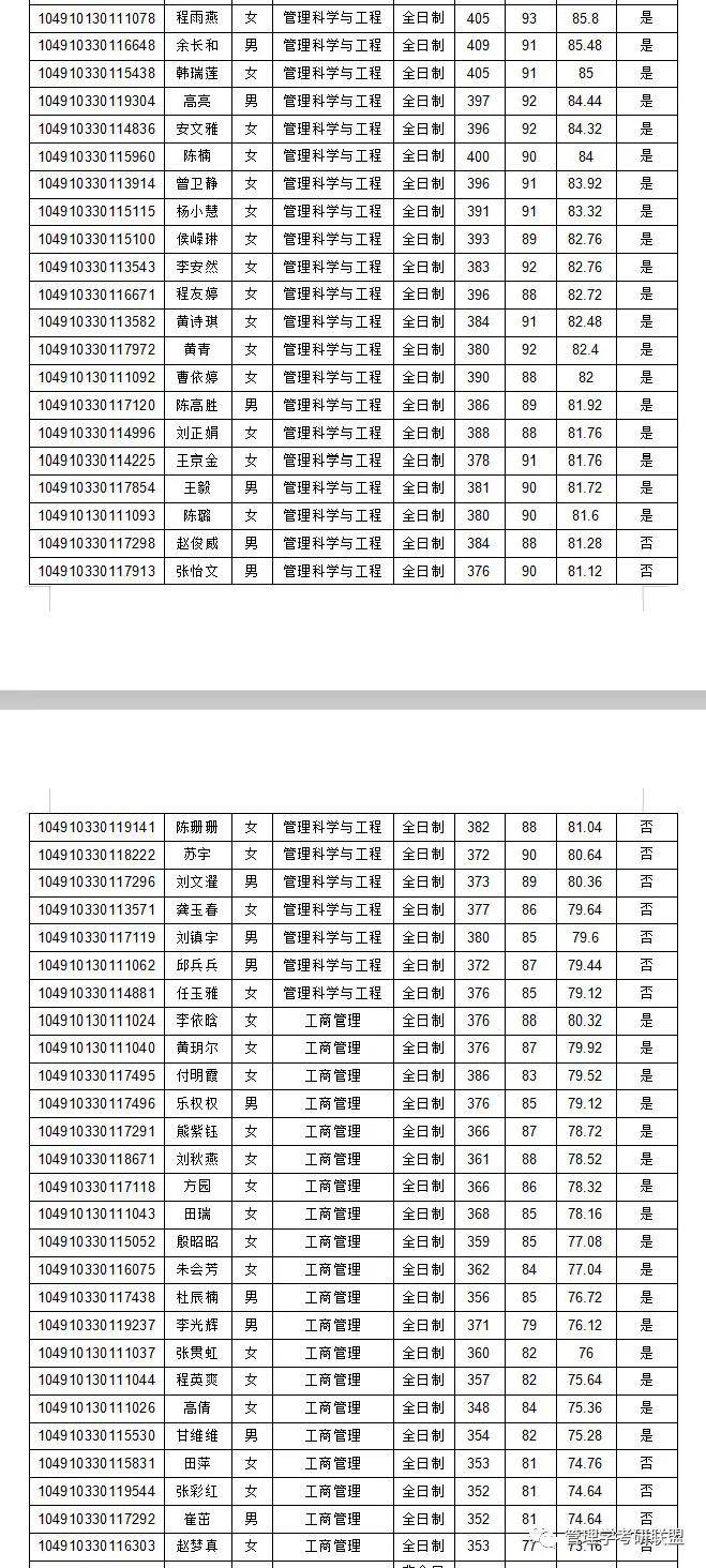 管理科学与工程拟录取21人,含优秀营员2人,淘汰9人,最低分378,最高分409