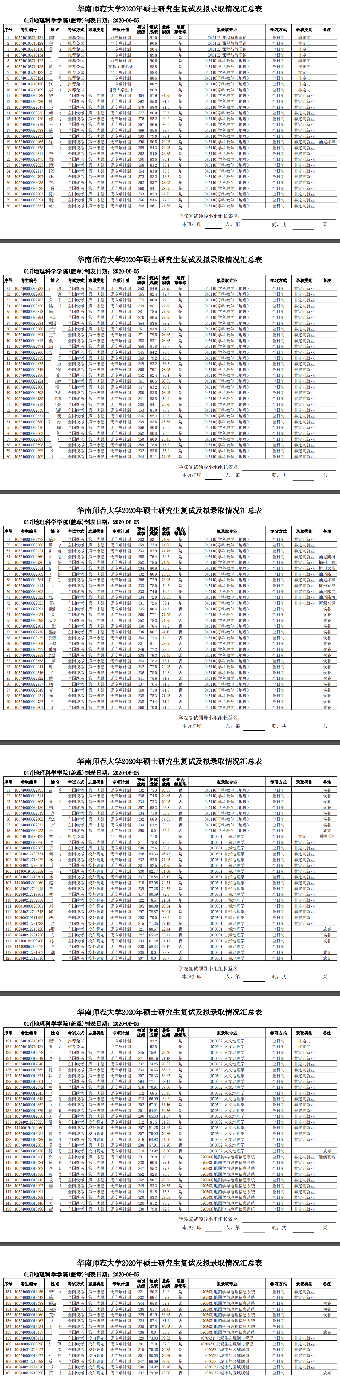 华南师范考研辅导班:2020年华南师范大学地理科学学院硕士研究生复试成绩及拟录取名单