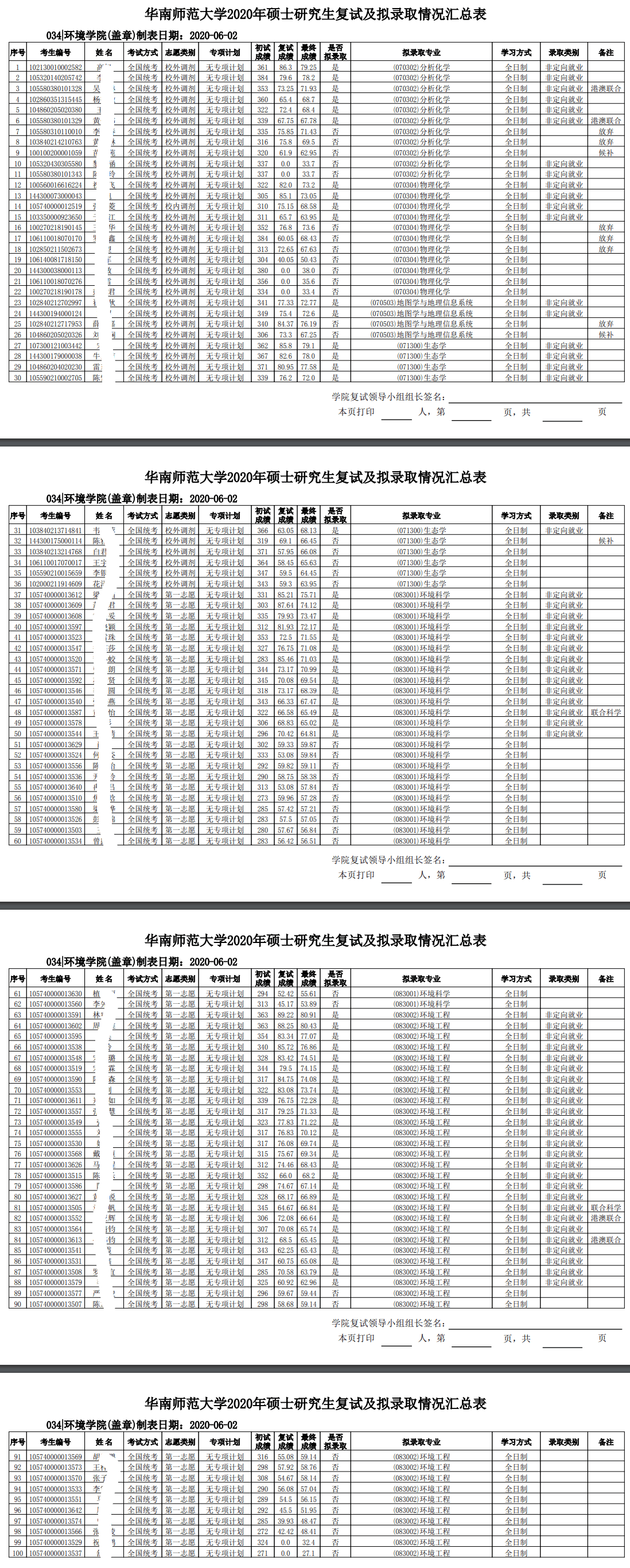 华南师范考研辅导班:2020年华南师范大学环境学院硕士研究生复试成绩及拟录取名单