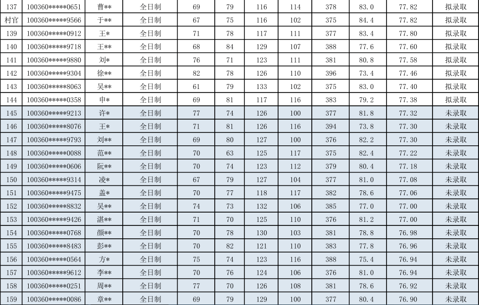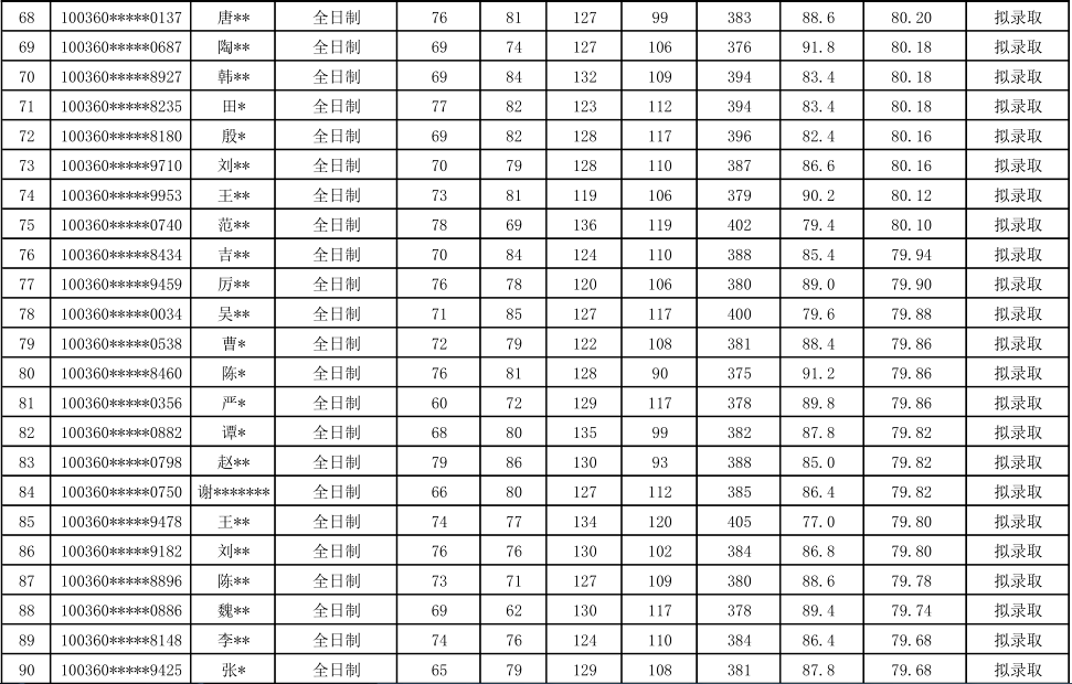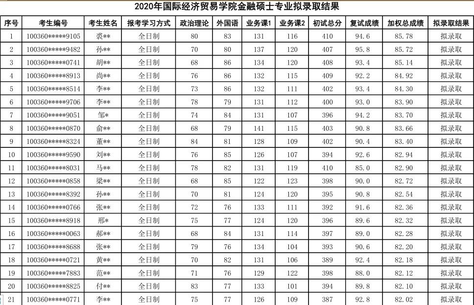 对外经济贸易大学国贸学院金融硕士2020年硕士研究生录取名单